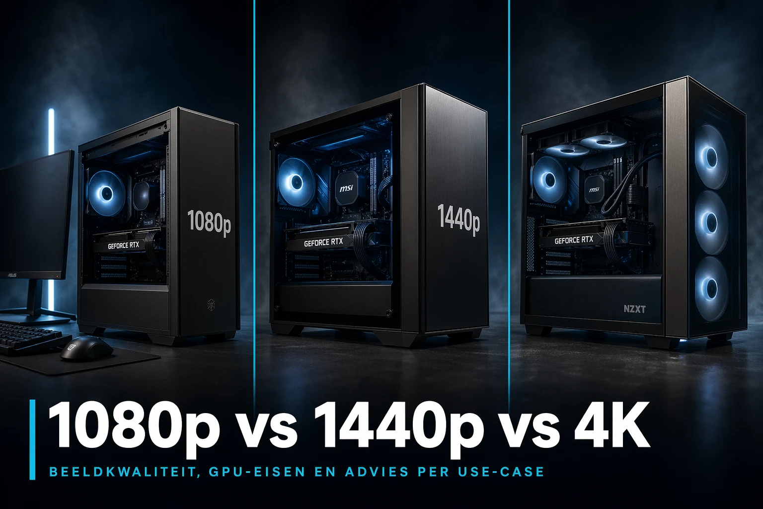 Lichte positieve druk (meer intake dan exhaust) houdt stof buiten via gefilterde openingen. Negatief werkt ook, maar trekt stof door elke naad. Voor de meeste cases: 2-3 intake, 1-2 exhaust.